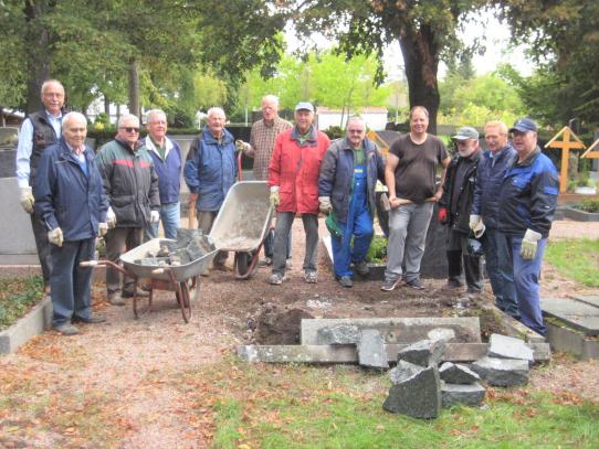 Bei solchen Gelegenheiten beheben die „Volontäre“ dann auch die Setzungen, die nach Beerdigungen auf dem Friedhofes entstehen und beugen so Unfallgefahren auf den Wegen vor. Gleich an drei exponierten Stellen wurden beim jüngsten Einsatz solche Gefahrenstellen behoben.