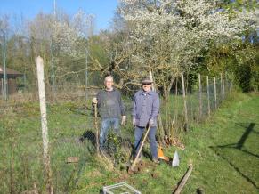 Der Bachlauf im Bereich der Holzbrücke wurde gereinigt, vor dem Homberg wurde eine Wegemarkierung des rhein-hessischen Jakobspilgerweges gerichtet und auf der kleinen Streuobstwiese neben dem Beachvolleyplatz mussten der Zaun ausgebessert und Obstbäume geschnitten werden.
